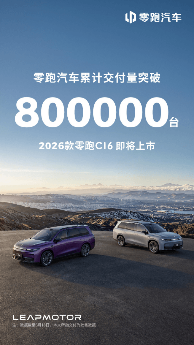 ▍零跑汽车累计交付破80万,2026款C16携70项升级上市15.18万起
