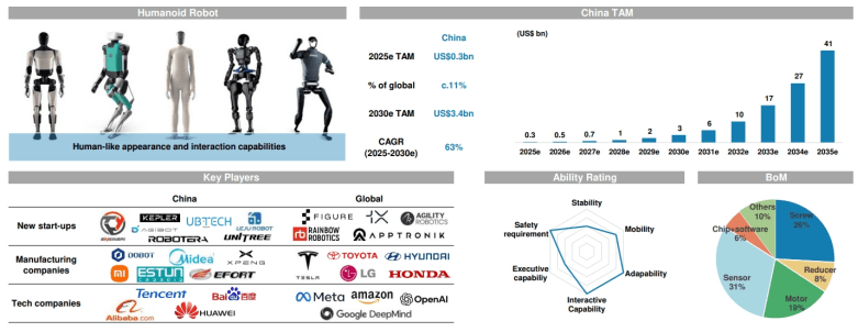 摩根士丹利还预测,中国的人形机器人市场将以每年63%的速度迅速扩张,从今年的3亿美元增长到2030年的34亿美元。到2030年,中国预计将拥有25.2万台人形机器人,到2050年将增加到3.02亿台,占全球人形机器人总量的30%。
