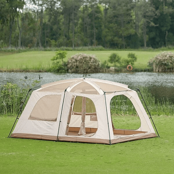 双室一厅设计:这款帐篷采用了双室一厅结构,约13平方米的空间完美适合家庭露营或好友聚会,让多人露营不再拥挤,增加了出行的舒适感。