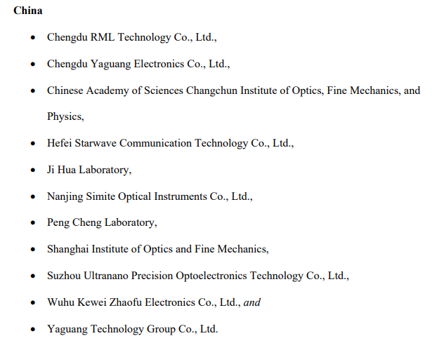 据悉,对所有受EAR管辖的物品出口、再出口和美国国内转移至这些新增实体,均需要获得许可证。